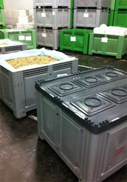 E’ necessaria pertanto la creazione di una filiera castanicola nazionale maggiormente efficiente che porti alla diminuzione del prezzo al consumo e ad una più equa redistribuzione del valore aggiunto tra gli operatori della filiera. A tal fine, i Mercati Ortofrutticoli all'Ingrosso (specie quelli “alla produzione”), devono concorrere a promuovere politiche di sostegno all’associazionismo dei produttori anche attraverso efficaci azioni di animazione e divulgazione per accrescere il valore aggiunto percepito dai produttori. Come per molti altri prodotti tipici di cui è ricca la nostra Nazione, anche per la “regina” delle produzioni di montagna, il sistema dei Mercati all'Ingrosso potrebbe fare la parte del leone, creando al prorio interno delle vetrine specializzate che potrebbero anche cambiare con le varie stagioni. Un punto di forza potrebbe anche essere quello di commercializzare non solo la castagna o il marrone “tal quale”, ma favorire anche la valorizzazione delle farine ricavate dalle varietà più adatte e diverse per ogni regione/territorio.In ultimo, ma non meno importante, i Mercati dovrebbero anche, tramite i propri Operatori e con l'appoggio delle Direzioni, diffondere l'utilizzo di tecniche di conservazione innovative per ampliare il tempo di shelf-life. In un recente convegno organizzato a Zocca (MO), è stata presentata un innovativa applicazione delle tecniche di atmosfera controllata per la conservazione a lungo termine della castagna/marrone. Il modulo (vedi foto) è composto da una cassa rigida di plastica e da un coperchio coperchio rigido munito di membrane respiratorie con permeabilità selettiva. L’insieme forma un modulo individuale da 610 litri (o 430 litri) nel quale viene stoccato il prodotto.