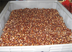 La diffusione passiva dei gas, attraverso la membrana del coperchio, genera un’atmosfera ottimale capace di ottenere una durata di conservazione più lunga: l’atmosfera si stabilizza grazie alla respirazione della frutta e con la diffusione passiva attraverso la membrana. Caratteristica importante anche per le castagne/marroni è il mantenimento di un elevata igrometria all’interno del modulo (vicina al 100%), evitando gravi perdite di peso. Con il modulo Janny MT le castagne conservano tutta la loro turgescenza (meno dell’1,5% del peso) anche dopo 6 mesi di magazzinaggio.